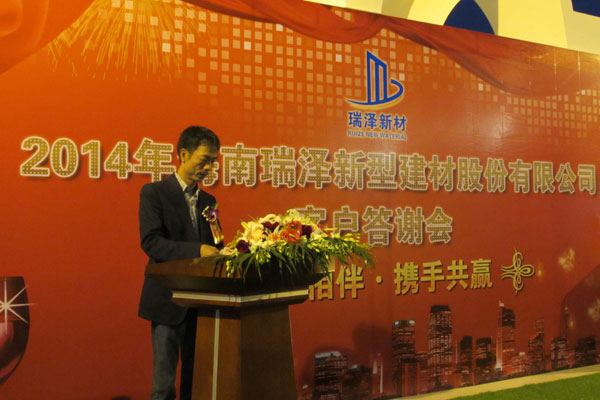 2015年1月18日,公司在三亞、?趦傻氐目蛻舾卸鞔鹬x會圓滿結(jié)束。這是海南瑞澤新型建材股份有限公司的一大盛事,一年一度的客戶答謝會不僅是我們公司活動中一道亮麗風(fēng)景線,也是公司在新年伊始送給長期以來一直支持我們的廣大客戶的一份特別禮物。