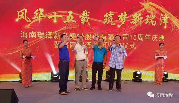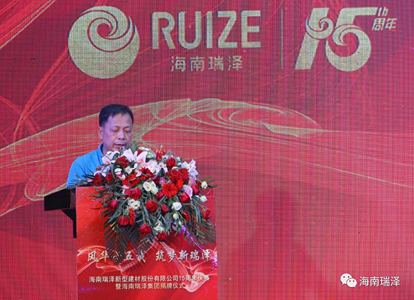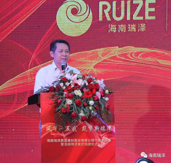 風華十五載,筑夢新瑞澤。2018年6月28日,海南瑞澤新型建材股份有限公司十五周年慶典暨海南瑞澤集團揭牌儀式在三亞瑪瑞納酒店隆重舉行。市委常委、統(tǒng)戰(zhàn)部部長陳正光、原三亞市政協(xié)主席趙普選、董事長張海林、董事馮儒、陳健富、毛惠清、孫令玲、公司高管、股份公司各部室負責人及代表、各分、子、托管公司總經(jīng)理、相關合作單位及十五周年忠誠員工等參加了此次活動。