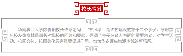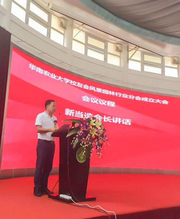 10:30華南農(nóng)業(yè)大學(xué)校友會風(fēng)景園林行業(yè)分會在華農(nóng)紅滿堂隆重舉行成立大會,張海林先生當(dāng)選首屆會長。董事長在致辭中表示:園林專業(yè)是學(xué)校明星專業(yè)之一,實踐素有“北有北林,南有華農(nóng)”之美譽。風(fēng)景園林行業(yè)分會的成立,是希望能在知識邊界擴展的今天,能建立一個新的組織,凝聚華農(nóng)園林人力量,校友們能互相幫助,互相合作,凝心聚力,融合發(fā)展。
