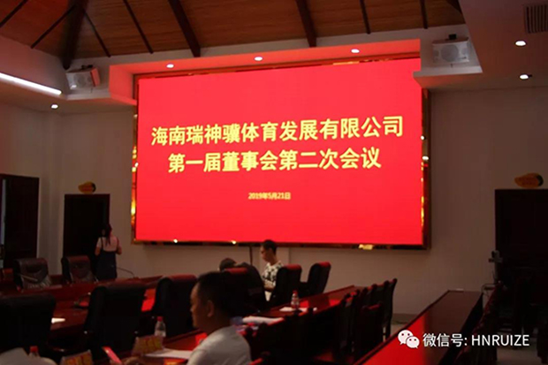 2019年5月21日下午,海南瑞神驥體育發(fā)展有限公司第一屆董事會第二次會議在海南農(nóng)墾神泉集團八八大廈二樓會議室召開。海南瑞神驥體育發(fā)展有限公司董事長彭隆榮先生、董事及法人代表張海林先生、董事陳宏哲先生等七位董事出席本次會議,謝麗容、王敏曼等三位監(jiān)事、海南農(nóng)墾神泉集團相關(guān)領(lǐng)導(dǎo)及海南瑞澤集團相關(guān)領(lǐng)導(dǎo)列席本次會議。
